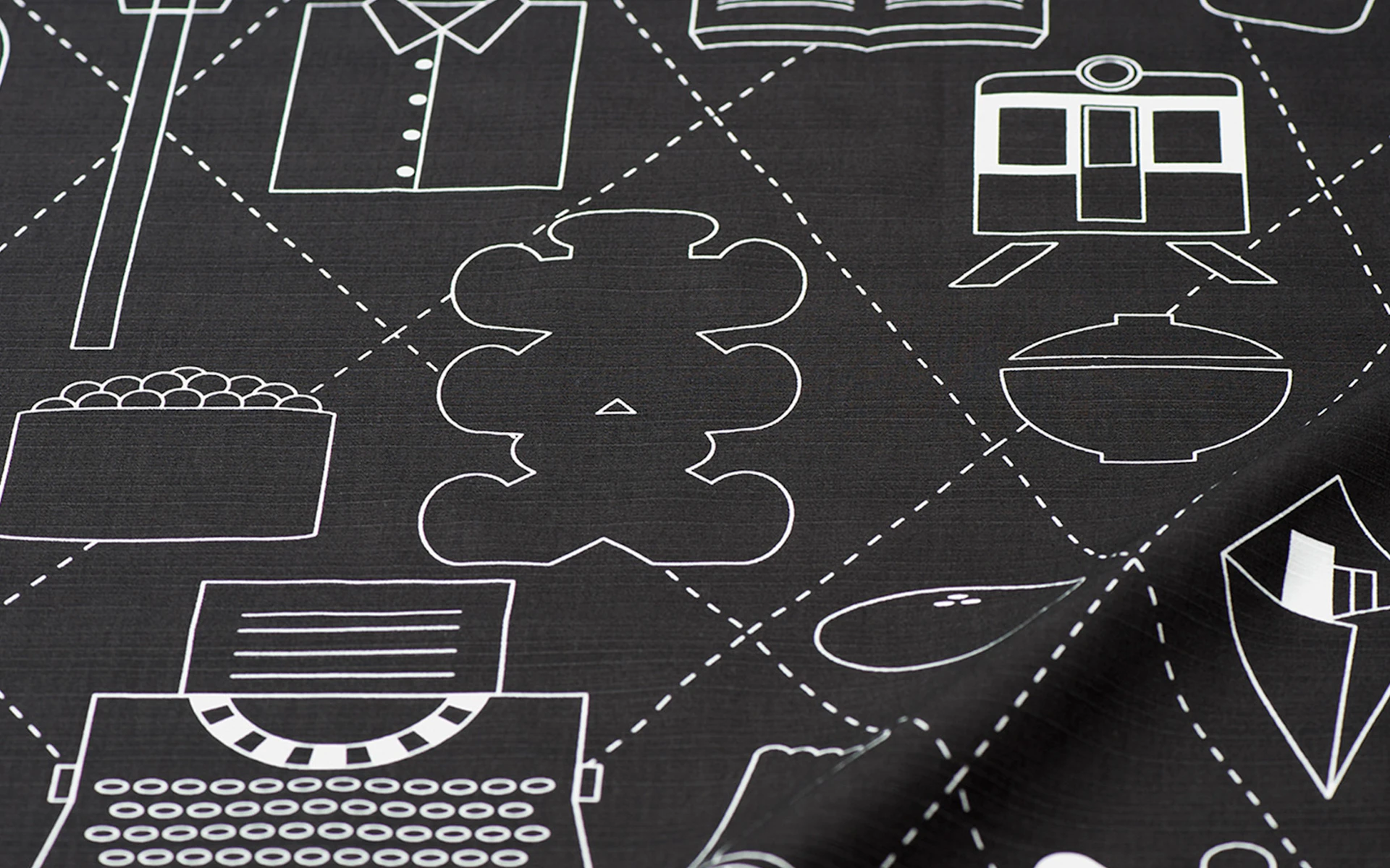 This wrapping cloth was produced as part of a project that aimed to take a fresh look at and promote the attractions of Chuo City in Tokyo. This area has been at the center of Japan since the Edo Period, and is home to much culture that was the first of its kind in the country. These cultural firsts are represented here with a pattern of pop icons that are familiar to youth and foreign visitors and can be understood as a kind of “modern Edo spirit”.