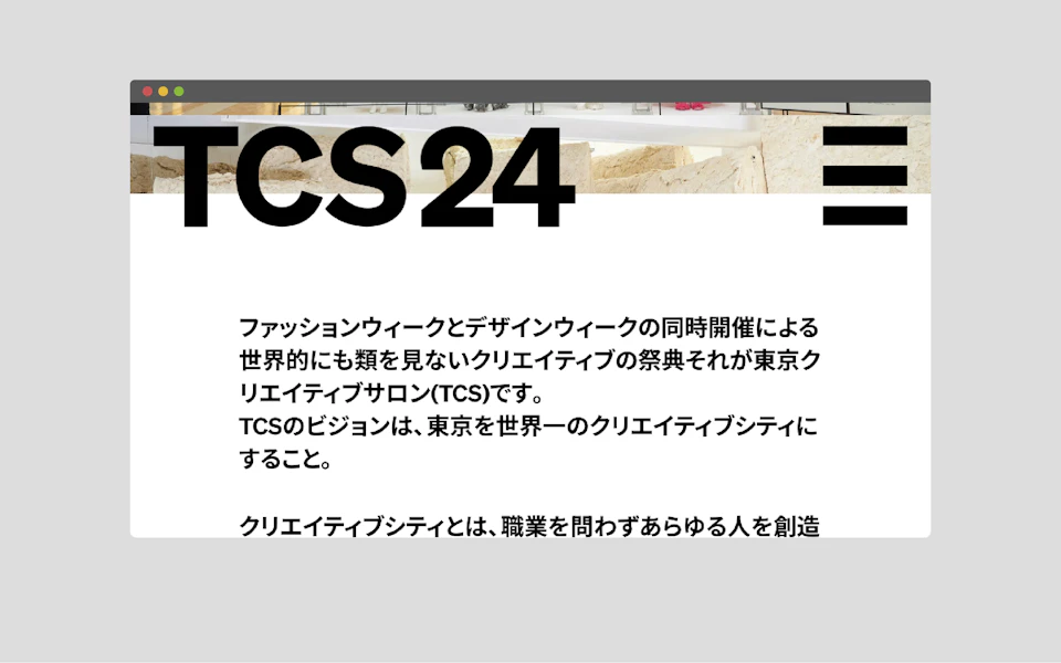 Tokyo Creative Salon (TCS) is a creative festival held across ten of Tokyo’s most iconic districts. Each March, this urban festival transforms the entire city with design and art. For its fifth iteration, we refreshed the visual identity and provided comprehensive design direction.