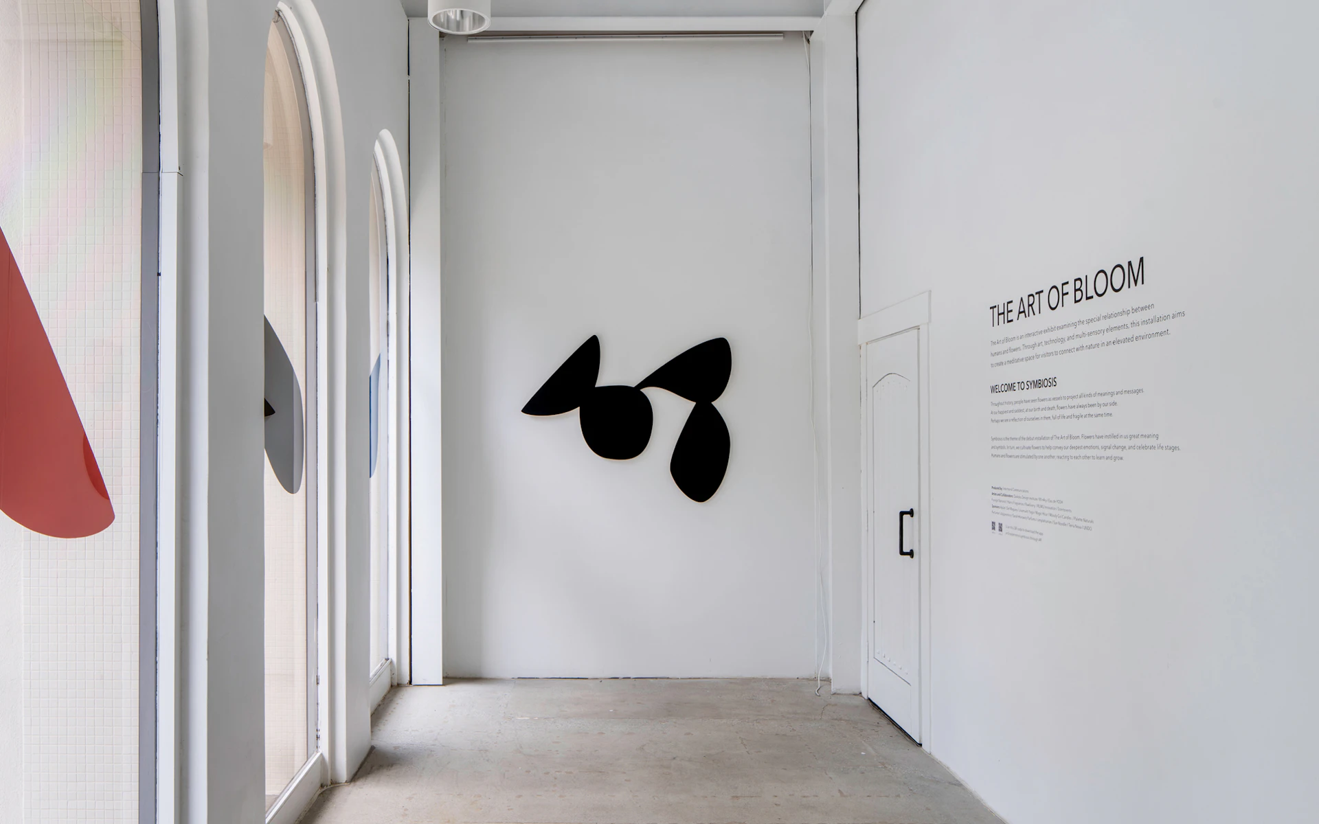 人と花の特別な関係性に焦点を当てた没入型のインタラクティブ展覧会の企画・制作を行いました。展示空間は、“SYMBIOSIS(共生)”をテーマに、ペタルルーム(Petal Room)とネイチャールーム(Augmented Nature Room)の2つから構成されています。
