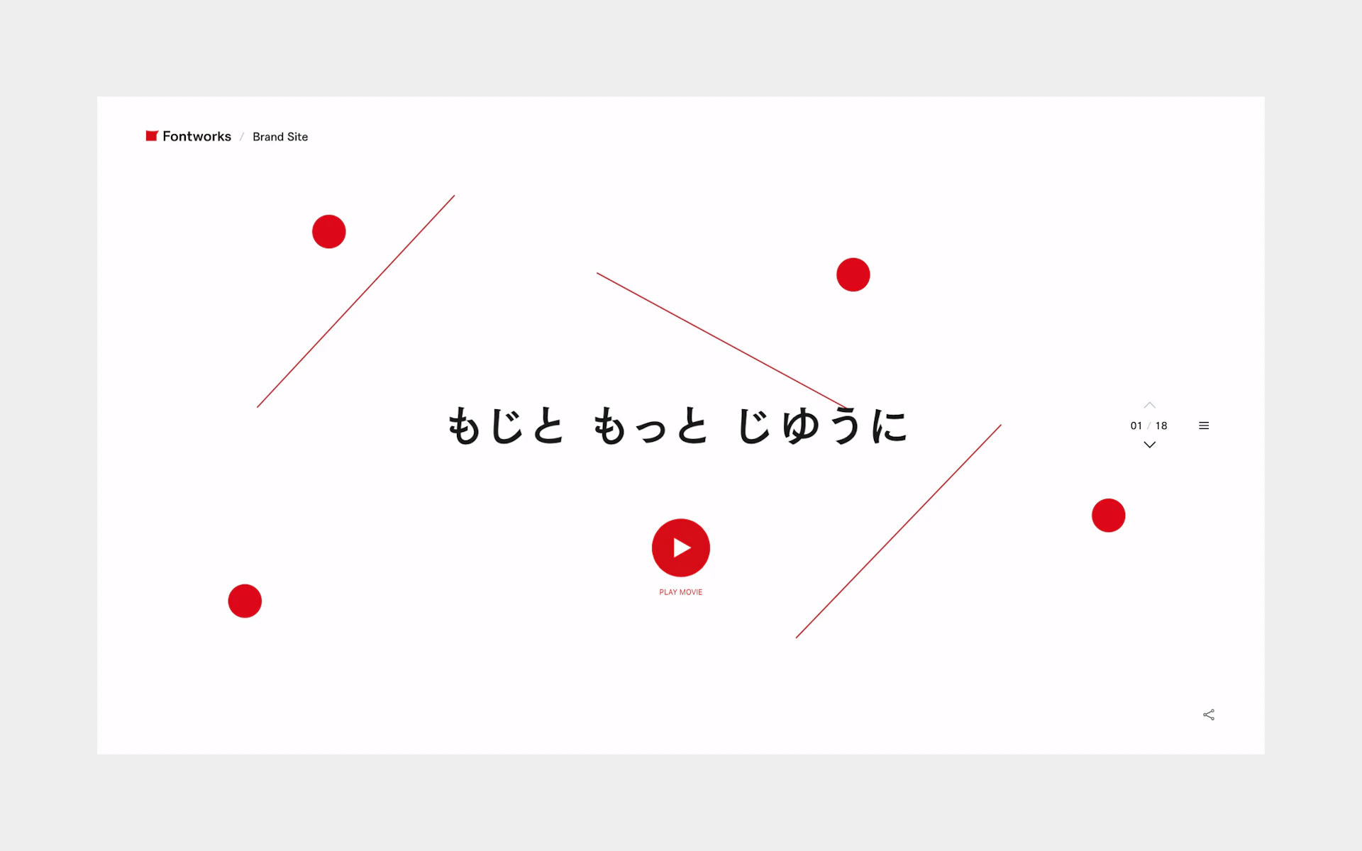 タグライン周知のために、ブランドサイトとブランドムービーを制作。「もじと もっと じゆうに」に込められたフォントワークス社の想いを丁寧に描き出すとともに、見る人のクリエイティビティをかき立てるような内容としています。