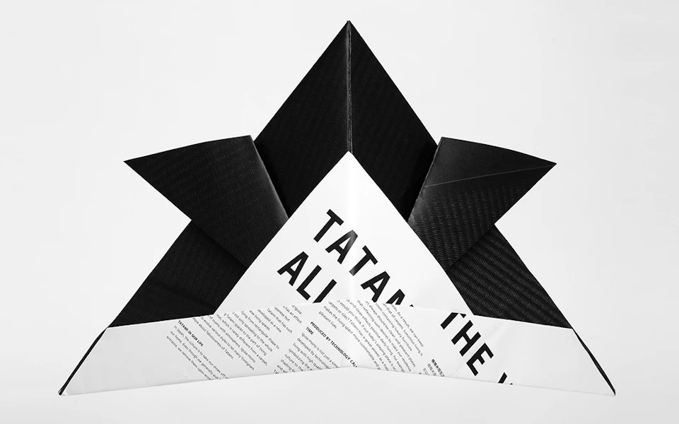 ポスターでは、書道にも通じるような緊張感ある黒と白との対比によって日本の美を表現。正方形のリーフレットはそのまま折り紙としてブースに展示し、精緻なものづくりを行う日本の品質を伝えました。