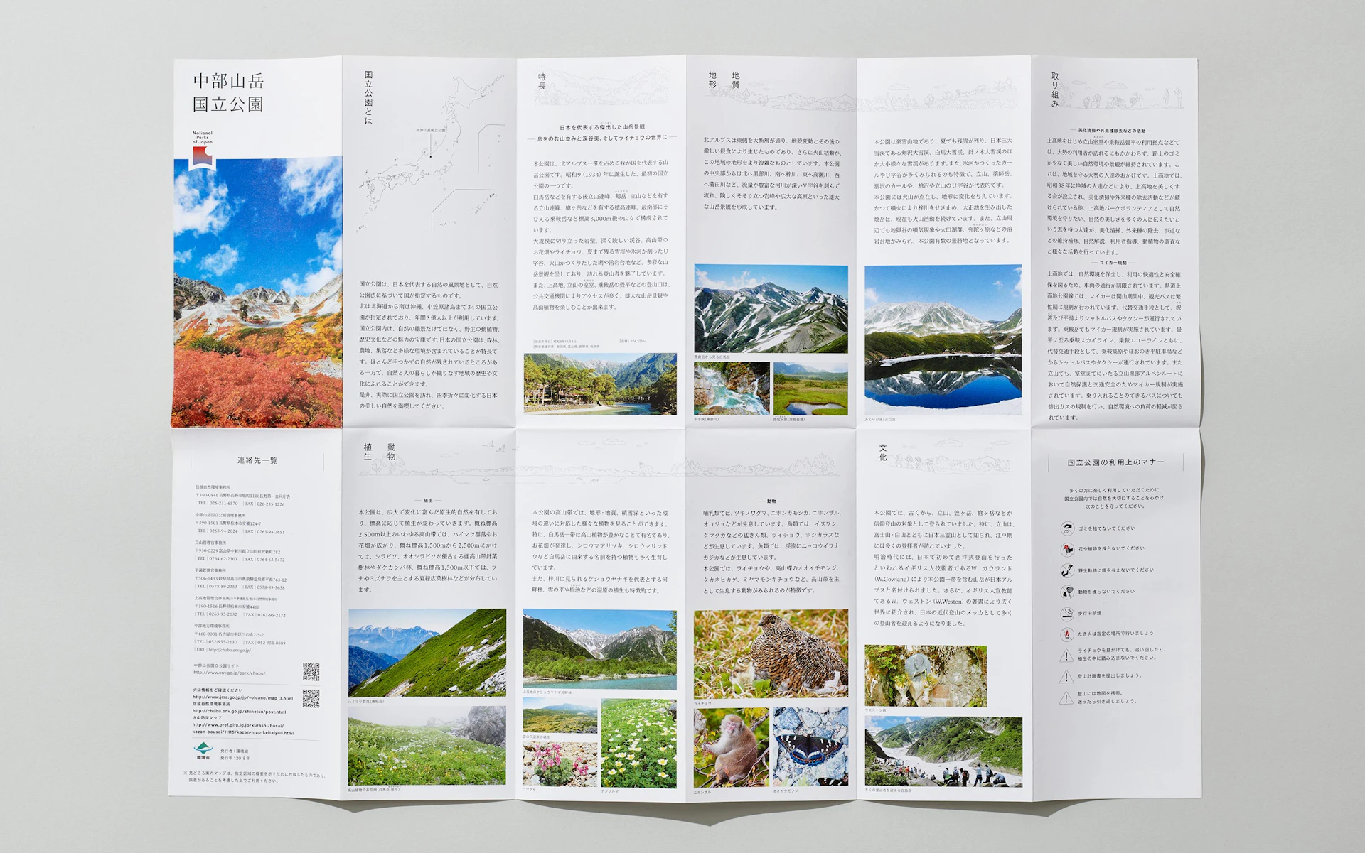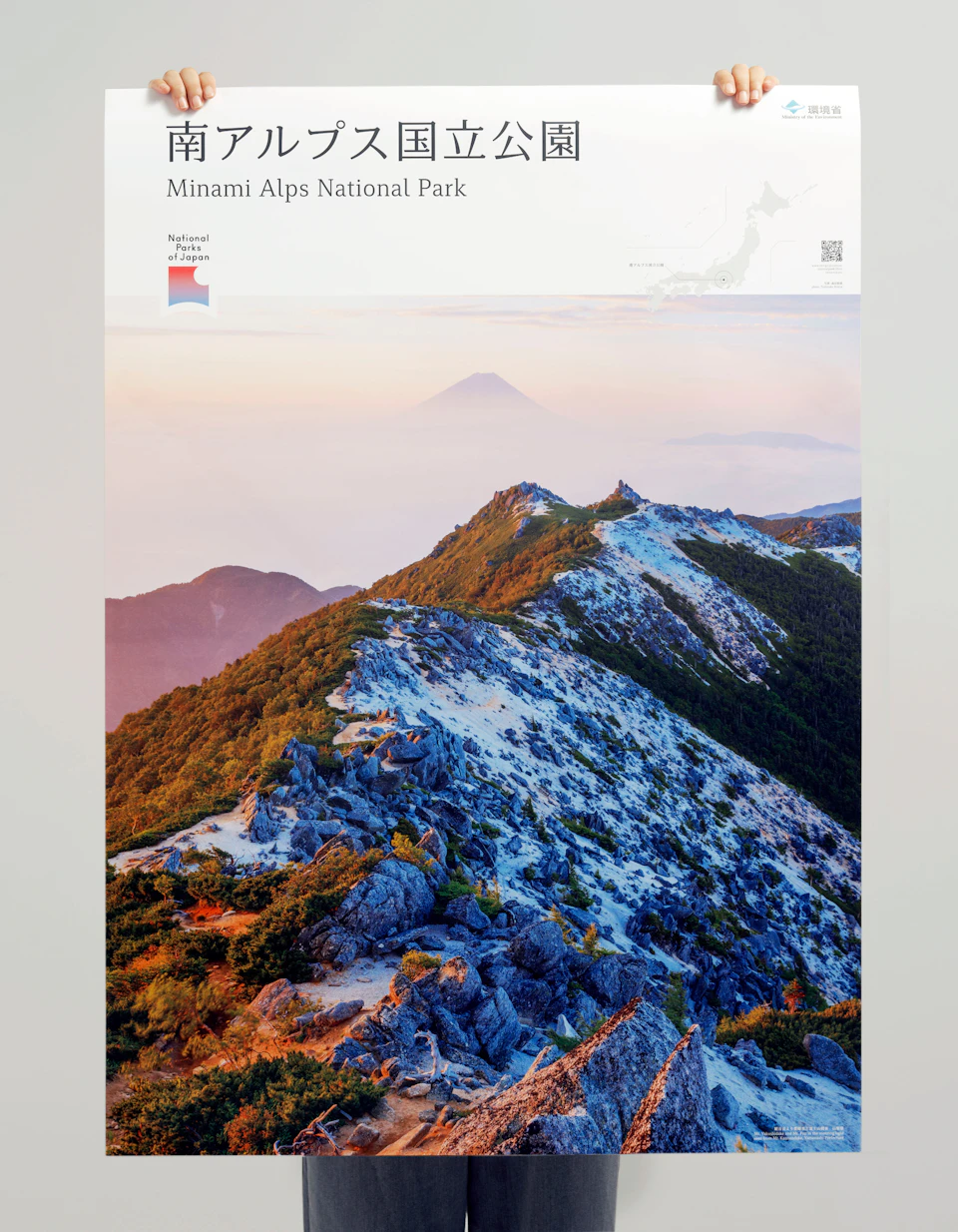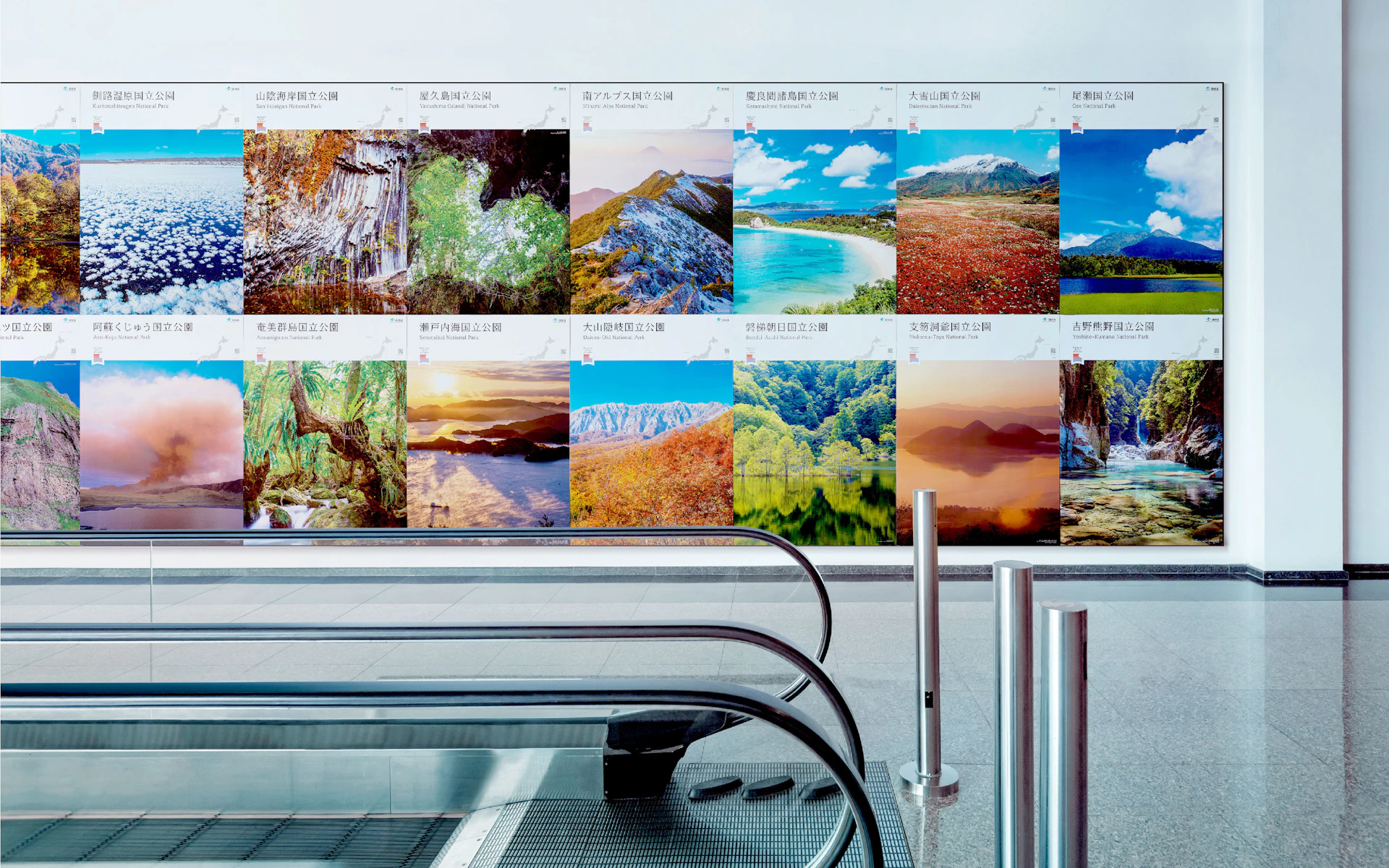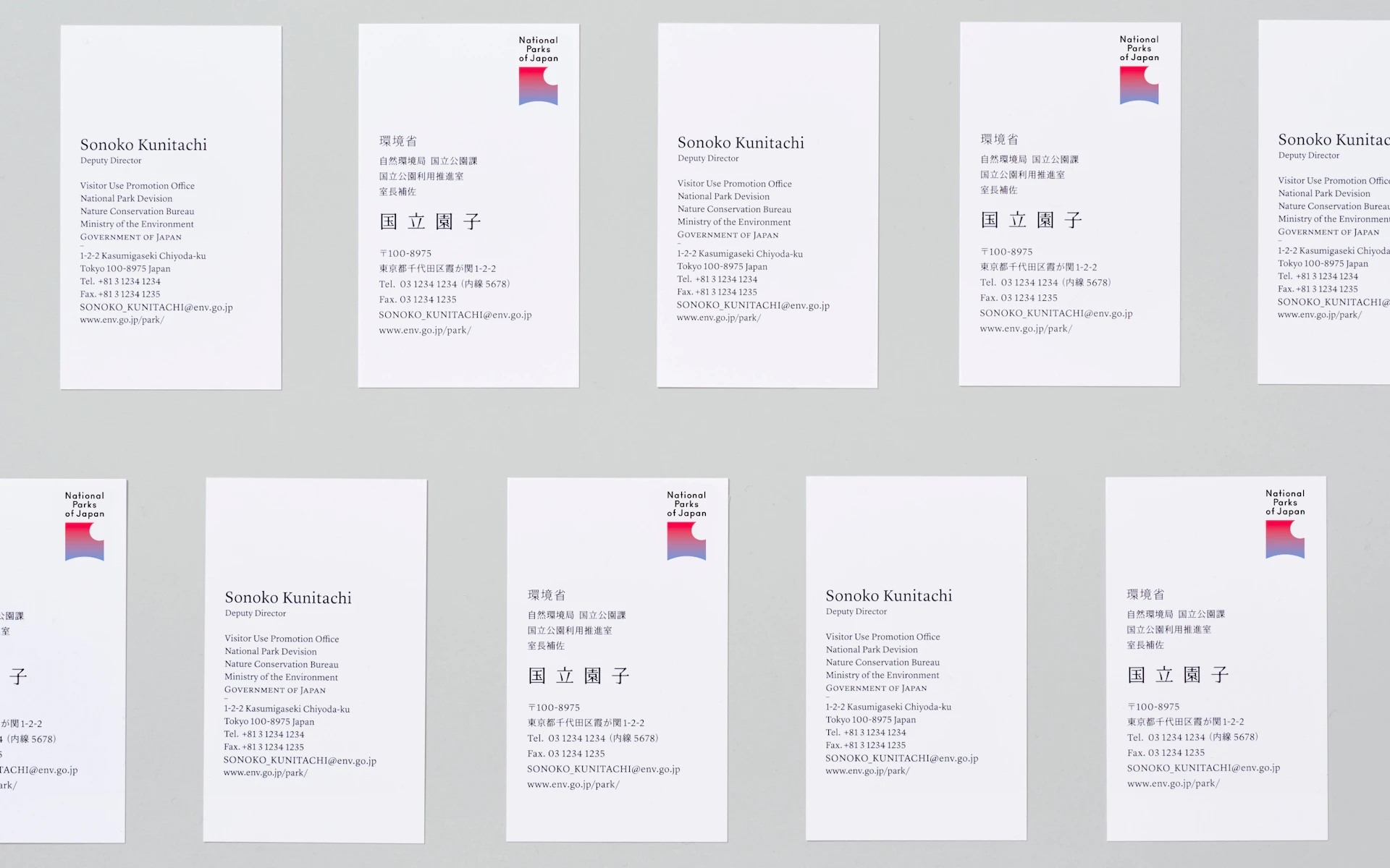全国の国立公園を日が昇る瞬間の霞みがかった日本独自の空で繋いだ統一シンボル。公園の外ではフルカラーでしっかりと公園の魅力を伝え、公園の中では単色を用いて美しい風景の引き立て役に徹しています。