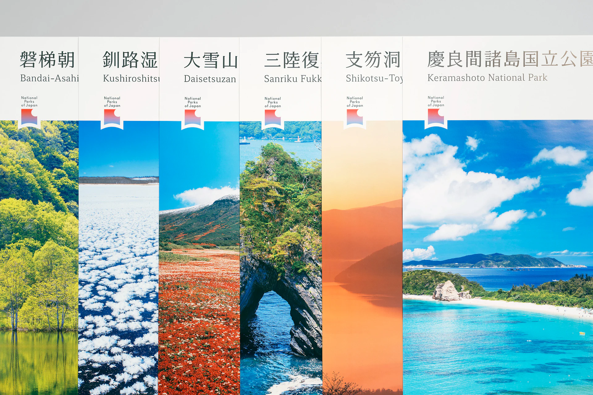 そこで、日の出の瞬間をモチーフにした統一シンボルを開発。リボン状のフレームで景勝地を表彰するような意匠とし、フォントやサインデザインのマニュアル化により、全国の国立公園で一貫したブランド展開を実現しています。