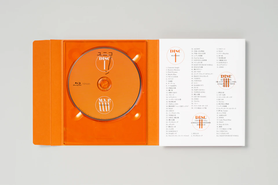日本のロックバンド・ユニコーンの35周年を記念し、デビュー以降全てのミュージックビデオを収録したBlu-ray商品のパッケージデザインを手がけました。