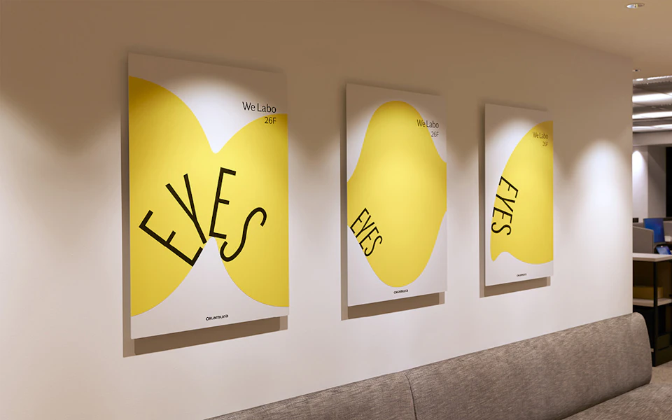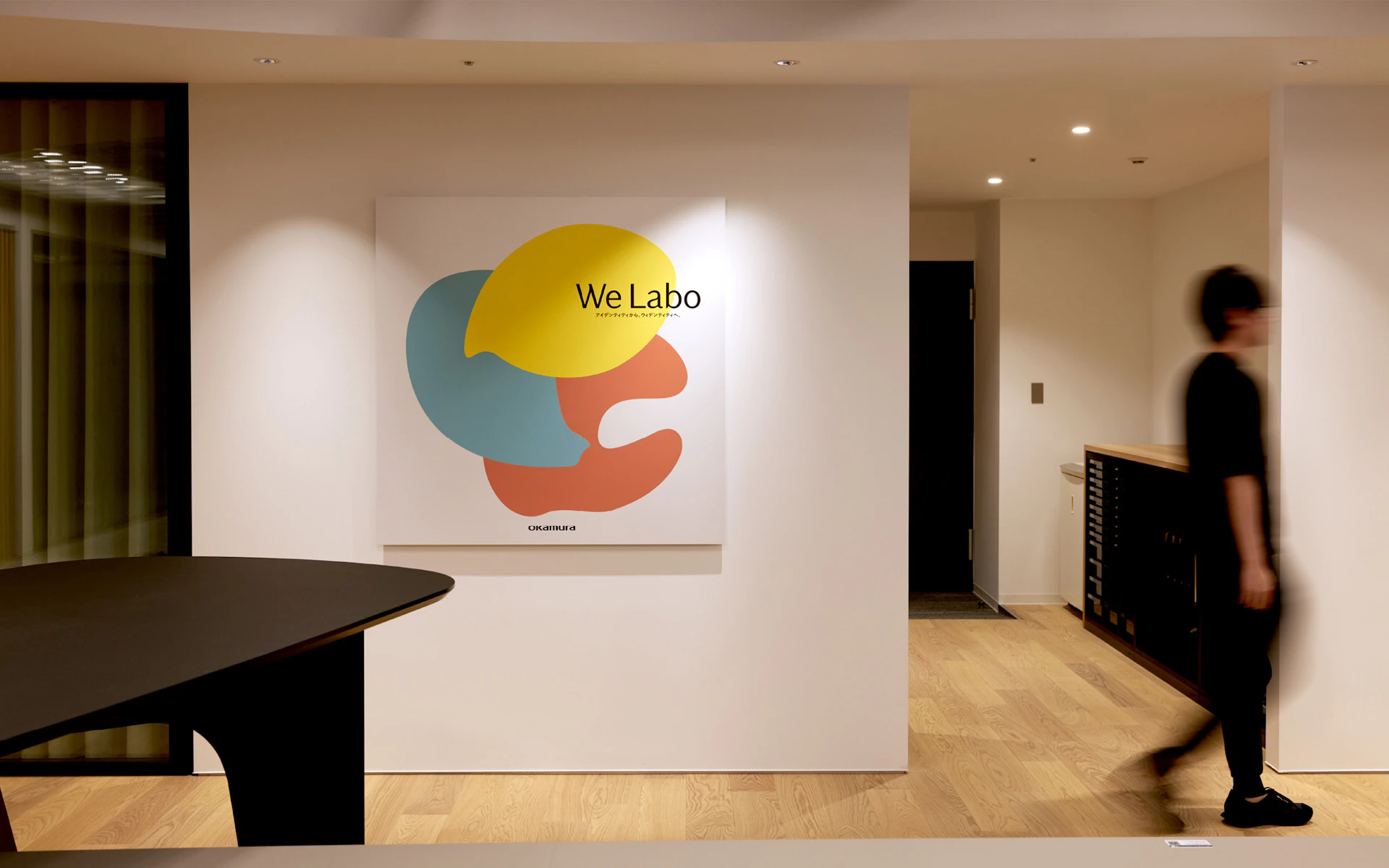 「人と人が活かし合う社会」の実現を「ウィデンティティ」というコンセプトに翻訳し、「We Labo」という名称やキービジュアルとして表現しました。また、オフィスの3フロアを「EYES 伝統と未来を見つめる目」「EARS 時代と人々の声を聴く耳」「HANDS モノとコトを生み出す手」と規定し、それぞれが独立しながらつながり合うひとつの有機体として表現しています。