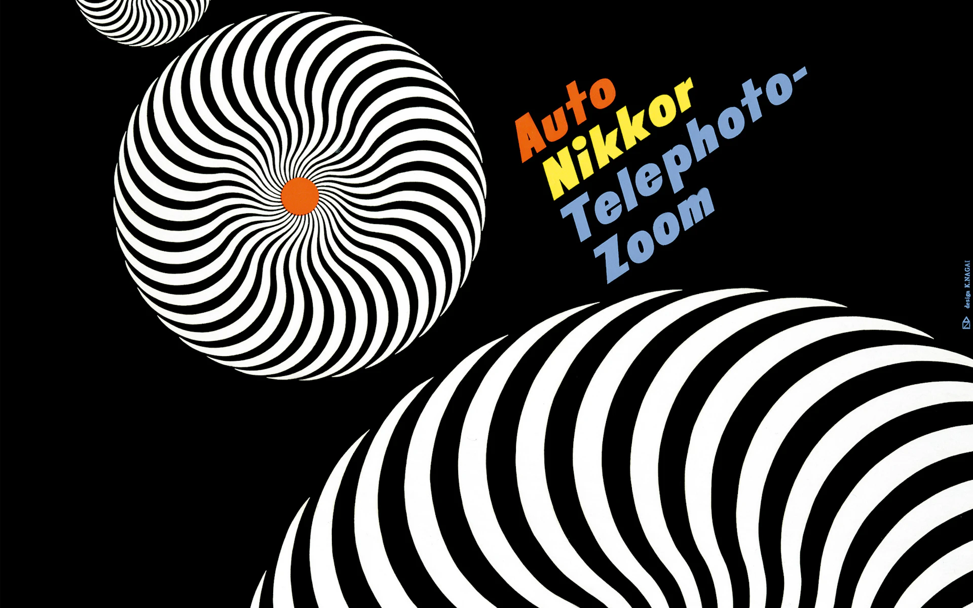 这是一则日本光学NIKKOR镜头的形象广告,以其在美国获得的卓越口碑为契机,这一镜头品牌迅速赢得了全球瞩目。这是1960年日本经济高速增长初期成立的日本设计中心的早期作品之一。